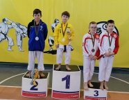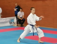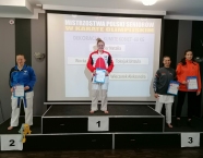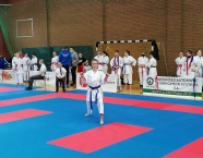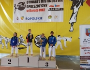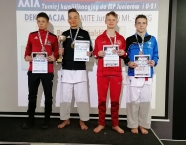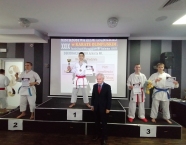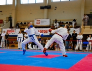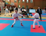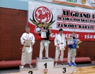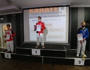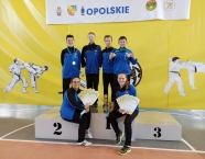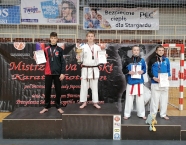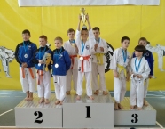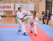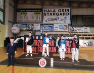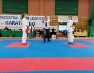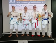 Po zakończeniu rywalizacji młodzików rozpoczęły się XXIX Mistrzostwa Ziemi Legnickiej w Karate Olimpijskim, które były turniejem kwalifikacyjnym do Mistrzostw Polski Juniorów Młodszych, Juniorów i U-21. W tych zawodach startowało około 250 zawodników z 35 klubów z całej Polski. Nasz klub reprezentowali: Wojciech Nowak, Michał Talaga, Jakub Neiner i Florian Wons. W najliczniej obsadzonej konkurencji, kata indywidualnym juniorów młodszych, startowało 31 zawodników, a miejsce trzecie wywalczył Michał Talaga. Startujący w tej samej konkurencji Wojtek oraz Jakub, po przegranych walkach, odpadli z dalszej rywalizacji. W konkurencji kata indywidualnym młodzieżowców Florian w swoim debiucie przegrał w walkach repasażowych. Oprócz konkurencji kata nasi zawodnicy startowali również w konkurencji kumite. Wojtek, po bardzo dobrej walce, odpadł w pierwszej rundzie, a Michał odpadł dalszej rywalizacji w drugiej rundzie. Jakub po walkach repasażowych zajął trzecie miejsce w konkurencji kumite indywidualnym juniorów młodszych (-57 kg). Gratulujemy naszym zawodnikom uzyskanych wyników oraz postawy podczas startu w zawodach. Panu Dariuszowi Taladze dziękujemy za pomoc przy dowozie zawodników na zawody.Udział w zawodach był realizowany w ramach działań wspieranych przez Gminę Krapkowice.