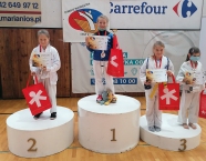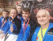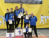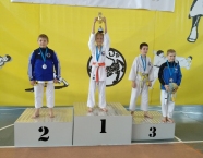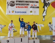 W Prudniku, 08.05.2021r., odbyły się Międzynarodowe Mistrzostwa Opolszczyzny w Karate WKF. Do rywalizacji przystąpiło około 140 zawodników z 12 klubów z Polski oraz Czech. Reprezentacja Klubu Karate-do SHOTOKAN w składzie: Miłosz Proszek, Jakub Wons, Leon Słoński, Szymon Hadamek, Fabian Glacel, Marcin Trocha i Marek Wojtala, wywalczyła 11 medali, z czego: 1 złoty, 2 srebrne i 8 brązowych. Miejsce pierwsze zajął Fabian Glacel w konkurencji kata indywidualne chłopców 10 lat. Miejsca drugie zajęli: Miłosz Proszek w konkurencji kumite indywidualne chłopców 8 lat – fantom oraz drużyna w składzie: Fabian Glacel, Szymon Hadamek, Jakub Wons startująca w konkurencji kata drużynowe chłopców 10 lat i młodsi. Miejsca trzecie zajęli: Szymon Hadamek w konkurencji kata indywidualne chłopców 10 lat, w konkurencji kata indywidualne chłopców 11 lat oraz w konkurencji kumite indywidualne chłopców 10-11 lat (+35kg), Fabian Glacel w konkurencji kata indywidualne chłopców 11 lat. Miłosz Proszek w konkurencji kata indywidualne chłopców 8 lat, Jakub Wons w konkurencji kata indywidualne chłopców 9 lat oraz kumite indywidualne chłopców 9-10 lat – fantom oraz Marek Wojtala w konkurencji kumite indywidualne chłopców 12-13 lat (+45kg). Opiekę nad zawodnikami pełniła kierownik ekipy Sylwia Tupko oraz Julia Wocka i Florian Wons. Bardzo dziękujemy wszystkim zawodnikom za postawę podczas startu, a rodzicom za dowóz zawodników na zawody. Zawody były realizowane w ramach działań wspieranych przez Gminę Krapkowice i Powiat Krapkowicki.