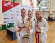 W czasie, gdy nasi młodsi zawodnicy rywalizowali w Międzywojewódzkich Mistrzostwach Młodzików oraz XXIX Mistrzostwach Ziemi Legnickiej w Karate Olimpijskim, nasza studentka, Julia Wocka reprezentowała Politechnikę Opolską w Akademickich Mistrzostwach Polski w karate WKF rozgrywanych we Wrocławiu. W zawodach rywalizowali zawodnicy z 12 uczelni z całej Polski. Julka, wspólnie z Natalią Szponder i Weroniką Szozdą (na co dzień reprezentującymi Klub Nidan Zawadzkie) wywalczyły pierwsze miejsce w konkurencji kata drużynowym kobiet, trzecie miejsce w konkurencji kumite drużynowym kobiet oraz trzecie miejsce w konkurencjikataindywidualnym kobiet. Julia startowała również w konkurencji kumite indywidualnym kobiet (-68kg) zajmując szóste miejsce. Osiągnięte wspólnie wyniki pozwoliły zająć Politechnice Opolskiej drugie miejsce w klasyfikacji generalnej. Gratulujemy wszystkim zawodniczkom uzyskanych wyników. Wyniki z zawodów można zobaczyć na stronie KU AZS Politechnika Opolska Politechnika Opolska.