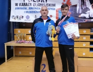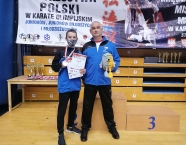 W dniu 07.11.2020 roku w Poznaniu w hali CITYZEN odbyły się Mistrzostwa Polski Juniorów Młodszych, Juniorów i Młodzieżowców w Karate Olimpijskim. W zawodach rywalizowało 199 zawodników z 35 klubów. Ze względu na trwającą pandemię, cieszymy się, że te mistrzostwa w ogóle doszły do skutku i to w ostatnim, możliwym terminie. Nasz Klub reprezentowała skromna dwuosobowa ekipa, którą stanowili Wojciech Nowak i Michał Talaga. Pomimo tak okrojonego składu, start w zawodach należy uznać do bardzo udanych. Wywalczyliśmy cztery tytuły wicemistrzów Polski. Swój wielki sukces odniósł Michał Talaga, zdobywając trzy tytuły wicemistrzowskie w konkurencjach: kata indywidualne juniorów młodszych 14-15 lat, kumite indywidualne juniorów młodszych 14-15 lat (-52kg) oraz, wspólnie z Wojtkiem, w kumite drużynowym juniorów młodszych 14 – 15 lat. Wojtek Nowak swój drugi srebrny krążek i tytuł wicemistrza Polski zdobył w konkurencji kumite indywidualne juniorów młodszych 14-15 lat (-70kg) oraz piąte miejsce w kata indywidualnym juniorów młodszych 14-15 lat. Dziękujemy naszym zawodnikom za walkę podczas tych mistrzostw i gratulujemy uzyskanych wyników. Jesteśmy dumni, że dzięki Wam, Basztuś znowu mógł promować Gminę Krapkowice na podium Mistrzostw Polski. Opiekę nad naszymi zawodnikami pełnił shihan Zdzisław Tupko. Serdeczne podziękowania również dla Stowarzyszenia Sympatyków Karate BUSHIDO Kędzierzyn – Koźle za możliwość wspólnego transportu na te mistrzostwa i pobyt w Poznaniu. Udział w zawodach odbył się w ramach działań realizowanych przy wsparciu Gminy Krapkowice oraz Wojewódzkiego Zrzeszenia Ludowych Zespołów Sportowych w Opolu.