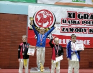 XI Grand Prix Śląska Polsko-Czeskiego w Głubczycach w karate WKF za nami. W zawodach rywalizowało około 160 zawodników z 15 klubów z Polski oraz 1 z Czech. Drużyna w składzie: Miłosz Proszek. Jakub Wons, Szymon Hadamek, Marcin Trocha, Marek Wojtala zdobyła siedem medali z czego 2 złote, 1 srebrny, 4 brązowe. Miejsce pierwsze zajęli: Jakub Wons w konkurencji kata indywidualne chłopców 9 lat oraz Marek Wojtala w konkurencji kumite indywidualne chłopców 12-13 lat (+54kg). Miejsce drugie: Szymon Hadamek w konkurencji kata indywidualne chłopców 10 lat. Miejsce trzecie: Szymon Hadamek w konkurencji kata indywidualne chłopców 11 lat oraz trzecie miejsce w konkurencji kumite indywidualne chłopców (-40kg), Jakub Wons w konkurencji kata indywidualne chłopców ćwiczący od września 2019r., Marcin Trocha w konkurencji kumite indywidualne chłopców 12-13 lat (-45kg). Miejsce piąte zajął Miłosz Proszek w konkurencji kata indywidualne chłopców trenujący od września 2019r. Dziękujemy bardzo Julce oraz Florianowi za opiekę, zawodnikom za wolę walki oraz uzyskane wyniki. Udział w zawodach realizowany przy wsparciu finansowym Gminy Krapkowice.