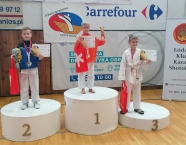 W zawodach startowało około 70 zawodników z 8 klubów karate ze strefy D reprezentujące województwa: śląskie, podkarpackie, dolnośląskie, opolskie i małopolskie w kategorii wiekowej 12-13 lat. Zawodnicy rywalizowali w konkurencjach indywidualnych kata i kumite. Nasz Klub reprezentowała trzyosobowa drużyna w składzie: Marek Wojtala, Marcin Trocha oraz debiutujący w zawodach Leon Słoński. Nasi zawodnicy uzyskali następujące wyniki: trzecie miejsce Leona w konkurencji kata indywidualnym 12-13 lat do 7.3 kyu, ósme miejsce Marka w konkurencji kumite indywidualnym 12-13 lat (+ 50 kg) oraz ósme miejsce Marcina w konkurencji kumite indywidualnym chłopców 12-13 lat (-50 kg). Natomiast Marek w konkurencji kata indywidualnym chłopców do (+6.1 kyu) oraz Marcin w konkurencji kata indywidualnym chłopców do (-7.3 kyu) odpadli z dalszej rywalizacje na etapie walk repasażowych. Dziękujemy za postawę oraz gratulujemy uzyskanych wyników.