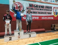 Po zakończeniu rywalizacji młodzików 24.04.2021r., rozpoczęły się XXIX Mistrzostwa Ziemi Legnickiej w Karate Olimpijskim, które były turniejem kwalifikacyjnym do Mistrzostw Polski Juniorów Młodszych, Juniorów i Młodzieżowców. W tych zawodach startowało 324 zawodników z 36 klubów z całej Polski. Nasz Klub reprezentowali: Marta Cieślak, Wojciech Nowak, Michał Talaga, Jakub Neiner oraz Florian Wons. Nasi zawodnicy wywalczyli następujące miejsca medalowe: złoto Wojtka w konkurencji kumite indywidualne juniorów (+76 kg) oraz srebro Michała Talagi w konkurencji kumite indywidualne juniorów (-52kg). W licznie obsadzonych konkurencjach kata oraz kumite, zawody odbywały się na bardzo wysokim poziomie wyszkolenia technicznego zawodników. Marta Cieślak startująca w konkurencji kata dziewcząt juniorki młodsze (najliczniej obsadzona konkurencja zawodów mająca 42 zawodniczki) swój start zakończyła przegrywając walkę repasażową o miejsce trzecie, a w konkurencji kumite juniorek młodszych Marta zakończyła rywalizację w repasażach. Podobnie było w konkurencji kata indywidualne juniorów, w której Michał Talaga, również przegrał w walce repasażowej o miejsce trzecie. W obu tych walkach zostaje mały niedosyt, ale cóż, nie poddajemy się i pracujemy dalej. Udany występ Kuby Neinera, który w konkurencji kumite indywidualnym juniorów młodszych (-57kg) przegrał walkę o miejsce trzecie. W pozostałych konkurencjach zabrakło trochę szczęścia, ale walka trwa nadal. Kolejny turniej eliminacyjny w Łodzi. Gratulujemy naszym zawodnikom uzyskanych wyników oraz postawy podczas startu w zawodach. Rodzicom dziękujemy za pomoc przy dowozie zawodników na zawody. Udział w zawodach był realizowany w ramach działań wspieranych przez Gminę Krapkowice.