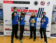 28.11.2020 WrocławStart w zawodach International Karate Wrocław Open, które odbyły się 28.11.2020r., był naszym ostatnim w tym roku. W zawodach startowało około 250 zawodników z 38 klubów z Polski i Czech. Zawody rozgrywane były na bardzo wysokim poziomie technicznym. Nasi zawodnicy: Marta Cieślak, Jakub Neiner, Wojtek Nowak i Julia Wocka wystartowali wspólnie z Wrocławskim Klubem Sportów Azjatyckich „Budokan” z Wrocławia. Nasze wyniki to dwa trzecie miejsca Julii Wocki w konkurencjach kata indywidualne seniorek oraz kumite indywidualne kobiet (+68kg). Udany występ Wojtka Nowaka, który w konkurencji kumite indywidualne chłopców U16 (+63 kg) zajął piąte miejsce. Jakub Neiner zajął siódme miejsce w konkurencji kumite chłopców U16 (-57 kg). Mniej szczęścia miała Marta, która odpadła z dalszej rywalizacji w pierwszej rundzie zarówno konkurencji kata, jak i kumite. Gratulujemy uzyskanych wyników. Opiekę nad zawodnikami pełnił trener Zdzisław Tupko. Udział w zawodach realizowany był w ramach działań wspieranych przez Gminę Krapkowice.