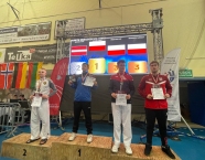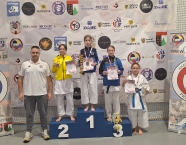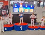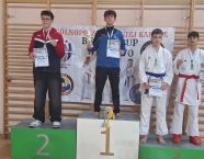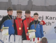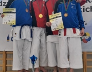 Otwarte Mistrzostwa Opolszczyzny w Karate WKF – 31.05.2025r. Prudnik. W zawodach wystartowało 215 zawodników z 21 klubów z Czech i Polski. Nasz klub reprezentowała odmłodzona drużyna w składzie: Natalia Langer, Lena Prochota, Maja Weiss, Vladyslaw Koriakin, Rostyslav Koriakin, Ilia Hncharuk, Tomasz Haliniak, Tymon Domżalski, Fabian Glacel. Opieką nad naszymi zawodnikami pełnił trener Zdzisław Tupko. Nasi zawodnicy wywalczyli: 6 medali z czego: 2 złote, 1 srebrny oraz 3 brązowe. Uzyskany wynik pozwolił nam na zajęcie 11 miejsca w klasyfikacji ogólnej na 21 startujących klubów. Miejsca medalowe zajęli: Fabian Glacel – I miejsce kumite mężczyzn U16 (+70 kg) oraz II – miejsce kumite mężczyzn U18 (+76 kg) oraz miejsce III - kata chłopców U16. Tymon Domżalski I – kumite chłopców U14, III – miejsce kata chłopców U14 oraz III – miejsce kata chłopców U16. Miejsca piąte zajęli: Illia Honcharuk – kumite U10 fantom, Lena Prochota kumite indywidualne dziewcząt U14 (-52 kg). Miejsca siódme zajęli: Illia Honcharuk – kata chłopców U10 oraz Tomasz Haliniak kata chłopców U14. Gratulujemy naszym zawodnikom uzyskanych wyników. Dziękujemy Pani Sarze za sesję fotograficzną. Udział w tych zawodach odbył się w ramach zadania publicznego współfinansowanego z budżetu Gminy Krapkowice.