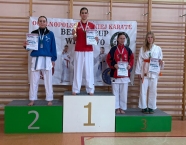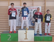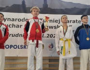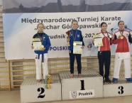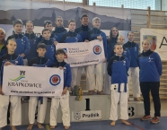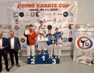 9 listopada trener Zdzisław Tupko wraz z zawodnikami: Julią Huras, Pauliną Swierzy, Szymonem Hadamkiem oraz Tymonem Domżalski uczestniczyli w Turnieju Karate WKF Dzieci i Młodzieży PRIME KARATE CUP, który odbył się w Lubaniu. W zawodach około 130 zawodników z 13 klubów z różnych rejonów Polski. Również w tych zawodach nasi zawodnicy zaprezentowali się z bardzo dobrej strony zdobywając łącznie 7 medali, z czego: 2 złote, 2 srebrne oraz 3 brązowe. Miejsca pierwsze zajęła Julia Huras w konkurencjach kumite indywidualne dziewcząt U14 (-52 kg) oraz w kumite indywidualne dziewcząt (U16 -54 kg). Warto zaznaczyć, że w tych konkurencjach Julka wygrała wszystkie swoje walki nie dając szans rywalkom. Dwa drugie miejsce wywalczył Tymon Domżalski w konkurencjach kata indywidualne chłopców U14 oraz kumite indywidualne chłopców U14 (-45 kg). Trzecie miejsca zajęli: Julia Huras w konkurencji kata indywidualne dziewcząt U14, Szymon Hadamek oraz Tymon Domżalski w konkurencji kata indywidualne mężczyzn U16. Uzyskane wyniki pozwoliły nam na zajecie 8 miejsca w klasyfikacji ogólnej. Gratulujemy naszym zawodnikom uzyskanego wyniku oraz waleczności. Udział w tych zawodach odbył się w ramach zadania publicznego współfinansowanego z budżetu Gminy Krapkowice oraz Starostwa Powiatowego w Krapkowicach.