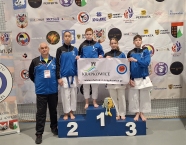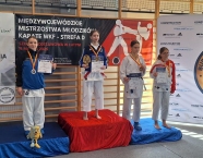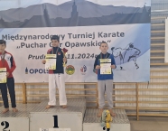 III PUCHAR POLSKI W KARATE DZIECI I MŁODZIKÓW - 30.11.2024 Grodzisk Mazowiecki. Nasz klub reprezentowało czterech zawodników w składzie: Julia Huras, Paulina Swierzy, Tymon Domżalski oraz Jakub Wons pod opieką trenera Zdzisława Tupko. W zawodach startowało 694 zawodników z Polski reprezentujących 61 klubów. Wielkie brawa dla naszej zawodniczki Julii Huras, która wywalczyła trzecie miejsce w konkurencji kumite indywidualne młodziczek (-52 kg) oraz siódme miejsce w konkurencji kata indywidualne młodziczek U14. Brawa dla Tymona Domżalskiego, startującego w konkurencji kata indywidualne młodzików U14, co prawda odpadł w trzeciej rundzie, ale zaprezentował dobry poziom wyszkolenia technicznego. Wyższość swoich rywali musieli uznać: Paulina oraz Jakub. Dziękujemy naszym podopiecznym za wolę walki oraz poświęcony czas. Udział w tych zawodach odbył się w ramach zadania publicznego współfinansowanego z budżetu Gminy Krapkowice oraz Starostwa Powiatowego w Krapkowicach.