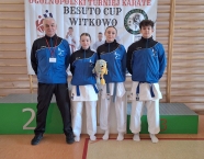 Kolejny pracowity weekend tym razem skromna trzy osobowa reprezentacja naszego klubu w składzie: Julia Huras, Emilia Brzezina, Fabian Glacel pod opieką trenera Zdzisława Tupko startowała w III Ogólnopolskim Turnieju Karate „BESUTO CUP” –Witkowo 05.04.2025r.. W zawodach rywalizowało 489 zawodników z 38 klubów z Polski i Ukrainy. Bardzo udany występ wszystkich naszych podopiecznych. Cztery pierwsze miejsca zdobyli: Julia Huras startująca w konkurencji kumite dziewcząt U14 (-52 kg) oraz Kumite indywidualne U16 (-54 kg) oraz Fabian Glacel w konkurencji kumite indywidualne chłopców U 16 (+70kg) oraz kumite indywidualne U 18 (+76 kg). Dwa drugie miejsca: Emilii Brzezina w konkurencji kumite indywidualne dziewcząt U16 (-61kg) oraz w konkurencji kumite indywidualne dziewcząt U18 (-59 kg). Dwa piąte miejsca w konkurencji kata indywidualne dziewcząt U14 oraz Fabian Glacel w konkurencji kata indywidualne chłopców U16. Gratulujemy naszym zawodnikom udanego startu oraz osiągniętych wyników łatwo nie było. Udział w tych zawodach odbył się w ramach zadania publicznego współfinansowanego z budżetu Gminy Krapkowice.
