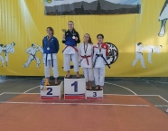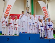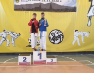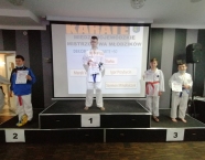 Po zakończeniu rywalizacji młodzików rozpoczęły się XXIX Mistrzostwa Ziemi Legnickiej w Karate Olimpijskim, które były turniejem kwalifikacyjnym do Mistrzostw Polski Juniorów Młodszych, Juniorów i U-21. W tych zawodach startowało około 250 zawodników z 35 klubów z całej Polski. Nasz klub reprezentowali: Wojciech Nowak, Michał Talaga, Jakub Neiner i Florian Wons. W najliczniej obsadzonej konkurencji, kata indywidualnym juniorów młodszych, startowało 31 zawodników, a miejsce trzecie wywalczył Michał Talaga. Startujący w tej samej konkurencji Wojtek oraz Jakub, po przegranych walkach, odpadli z dalszej rywalizacji. W konkurencji kata indywidualnym młodzieżowców Florian w swoim debiucie przegrał w walkach repasażowych. Oprócz konkurencji kata nasi zawodnicy startowali również w konkurencji kumite. Wojtek, po bardzo dobrej walce, odpadł w pierwszej rundzie, a Michał odpadł dalszej rywalizacji w drugiej rundzie. Jakub po walkach repasażowych zajął trzecie miejsce w konkurencji kumite indywidualnym juniorów młodszych (-57 kg). Gratulujemy naszym zawodnikom uzyskanych wyników oraz postawy podczas startu w zawodach. Panu Dariuszowi Taladze dziękujemy za pomoc przy dowozie zawodników na zawody.Udział w zawodach był realizowany w ramach działań wspieranych przez Gminę Krapkowice.